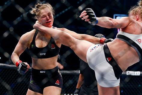 Holly Holm noqueó a Ronda con una patada espectacular en el cuello, que además de dejarla fuera de ese combate, la mantuvo 6 meses fuera por diversas lesiones en la mandíbula.